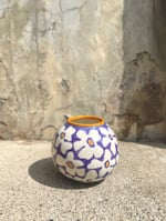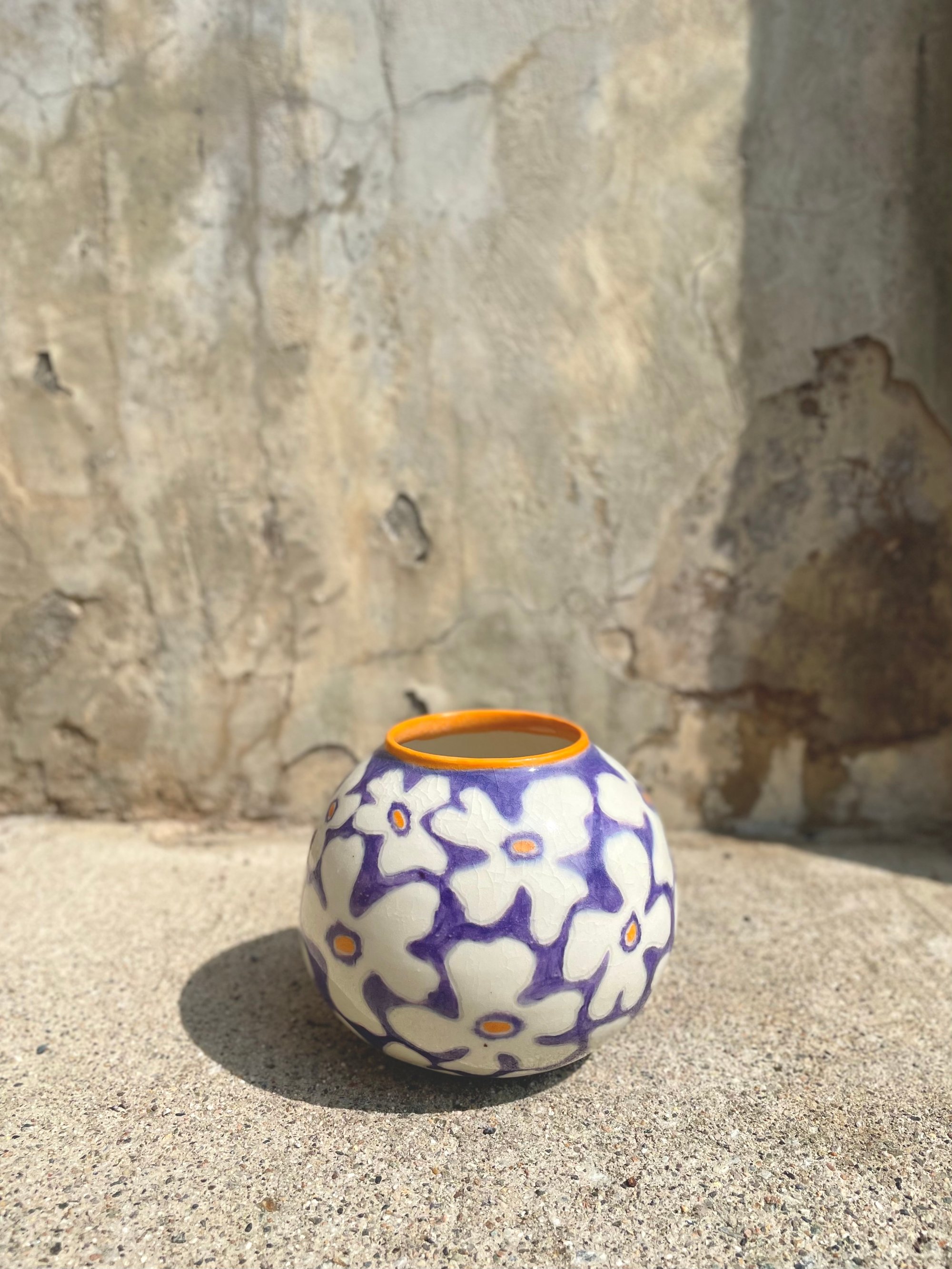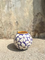 moon jar with groovy flowers -- or clouds from bikini bottom?? -- all over! porcelain.